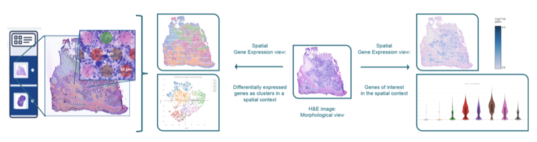 10x Genomics Visium technology offers groundbreaking spatial gene expression profiling. This cutting-edge platform enables researchers to visualize and analyze gene expression directly within the tissue’s spatial context. By integrating spatial and molecular data, our services empower you to uncover critical biological insights that are impossible with traditional bulk or single-cell RNA sequencing methods. By combining histology and whole transcriptome profiling (using fresh frozen or FFPE), this technology allows you to spatially map gene expression within tissues, providing valuable insights into cellular function and interactions. Whether you’re investigating tumor microenvironments, tumor heterogeneity, developmental biology, or other complex systems, our solution provides the precision and clarity needed to advance your discoveries.