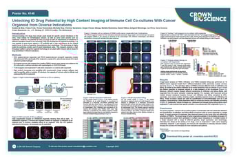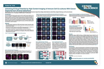 With the development of organoid technology, it is now possible to grow tumor objects in 3D scaffolds with a high resemblance to the original patient tumor in terms of genetics, transcriptomics and morphology. This technology is highly suited for preclinical screens and of great translational value. This research presents a high throughput platform using this organoid technology in co-culture with immune cells to study IO drug candidates in different indications.