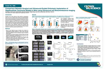 This study assessed the benefits of replacing traditional invasive surgical orthotopic implantation of hepatic tumor cell lines with a minimally invasive ultrasound guided approach. Tumor growth of both implantation methods were assessed using ultrasound and bioluminescence, as well as duration of surgery and animal recovery time. In addition, the immune landscape of both implantation methods was assessed using flow cytometry.
