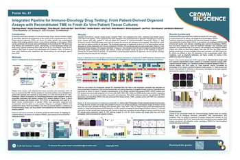 Successful preclinical evaluation of immuno-oncology drugs requires complex models to accurately represent all components of the human tumor microenvironment (TME). There are two promising approaches available for preclinical studies to more accurately represent the TME, each with advantages and limitations. In our immuno-oncology in vitro assays, PDOs can be combined with immune cells and fibroblasts to re-constitute the TME. Alternatively, assays with fresh tumor material containing native TME in the 3D Ex Vivo Patient Tissue (EVPT) platform can be utilized.