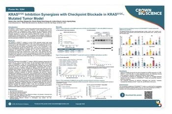 This poster describes the synergistic effects of Sotorasib with a checkpoint inhibitor on a model harboring the KRASG12C mutation. To evaluate novel therapeutic strategies for treating KRASG12C-mutated tumors, a CT26-KRASG12C tumor model was established using CRISPR/Cas9 and the combination of AMG510 with anti-PD1 therapy was explored by measuring cell proliferation, tumor growth, and immune profiling.