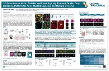 To address this, we developed a 3D bone marrow niche (BMN) model composed of endothelial-mesenchymal networks embedded in a bioactive hydrogel. This platform supports the survival and proliferation of patient-derived AML and MM cells, enabling medium-throughput drug testing with high-content imaging (HCI) for quantitative analysis.