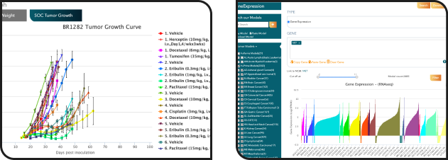• Evaluate and filter models based on indication, target, growth characteristics, standard of care treatment, and ethnicity