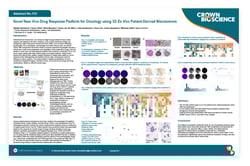 This poster details the establishment of a novel 3D Ex Vivo Patient Tissue Platform that combines a short-term 3D ex vivo tumor culture system using fresh patient tumors with the native TME intact with phenotypic high content image (HCI)-based analysis. This study entailed a detailed quantification of tumor sensitivity to targeted therapies, standard of care, and novel immunotherapies and drug combinations, tested on different cancer types.