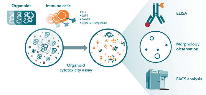 • Assess tumor organoid killing by allogenic T cells and CAR-T cells, or to test ADCC and ADCP effects