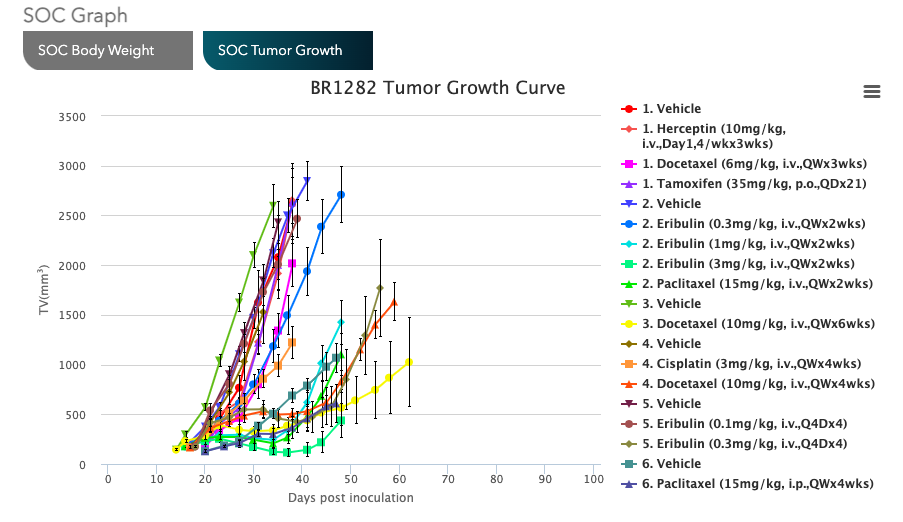 Log in to explore Crown Bioscience's well-characterized Patient-Derived Xenograft's through our searchable database. Access genomic, molecular, and phenotypic data including tumor growth curves, standard of care response, histopathology data, and patient information on the worlds largest collection