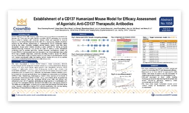 Preclinical models are essential for the efficacy assessment of investigational CD137 antibodies before entering the clinic; however, currently available immunocompetent animal models cannot meet this need e.g. syngeneics due to species specificity issues.