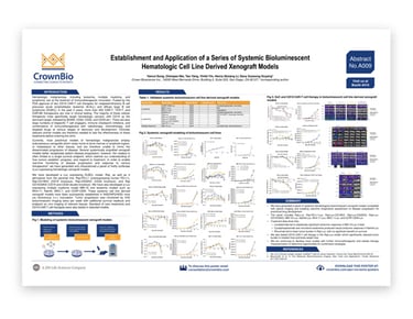 This poster details the generation of a panel of firefly luciferase (Luc) expressing hematologic xenograft models and presents initial tumor growth and treatment data.