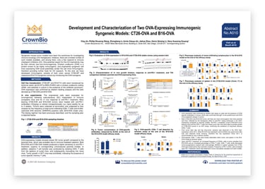 To enhance immunogenicity, and provide new tools for I/O research, we’ve engineered syngeneic cell lines expressing the highly immunogenic protein ovalbumin (OVA). This poster details variants of the colon cancer CT26.WT and melanoma B16-F10 syngeneic models generated by introducing the OVA transgene.