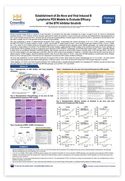 Clinically relevant DLBCL models are now needed for further preclinical testing of ibrutinib and other BTK inhibitors. To meet this need, CrownBio has established a series of patient-derived xenograft (PDX) models, recapitulating the diverse genotypes of de novo DLBCL patients including MYD88L265P/CD79BY197N double mutants, a MYD88L265P single mutant model, and a variety of wild type PDX.
