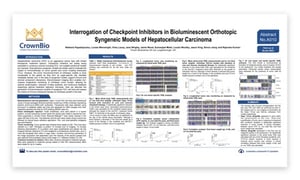 CrownBio has therefore developed orthotopic, bioluminescent, syngeneic HCC models allowing non-invasive and real time tumor burden determination, and assessment of checkpoint inhibitors to treat HCC.