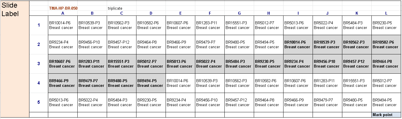 Map of breast cancer tumor microarray