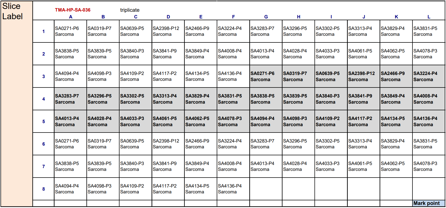 | QC | Each TMA slide has >90% core occupancy. H&E and Ki67 IHC staining have been performed on a representative slide of each lot of TMA product. |