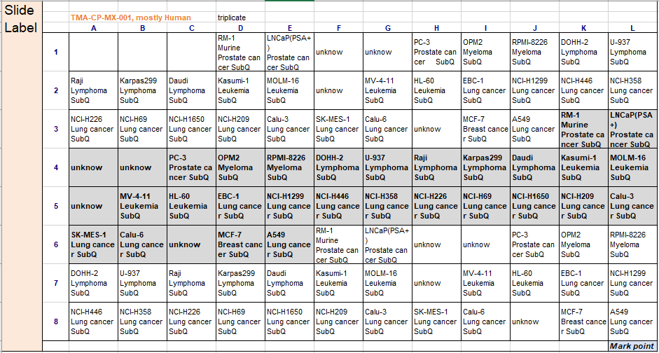 Map of mixed cancer types tumor microarray slide