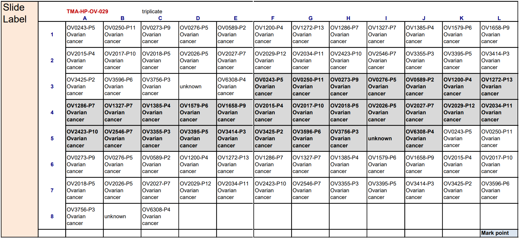 | QC | Each TMA slide has >90% core occupancy. H&E and Ki67 IHC staining have been performed on a representative slide of each lot of TMA product. |
