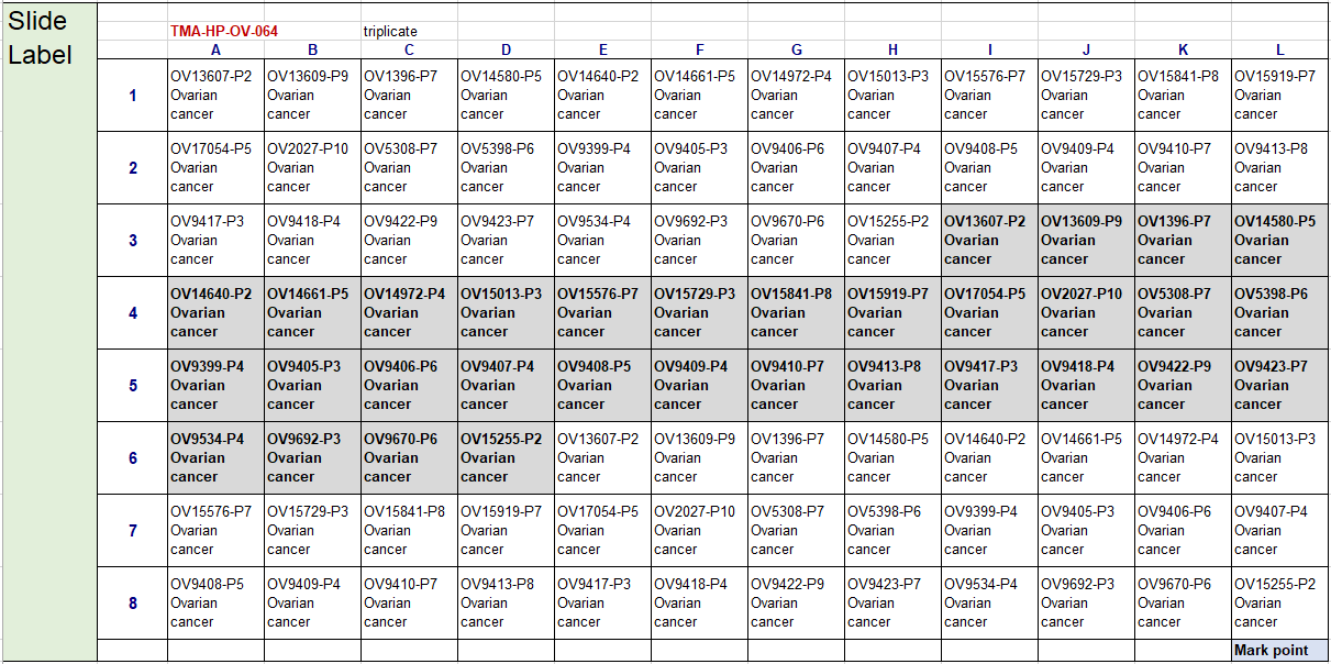 Map of ovarian cancer tumor microarray