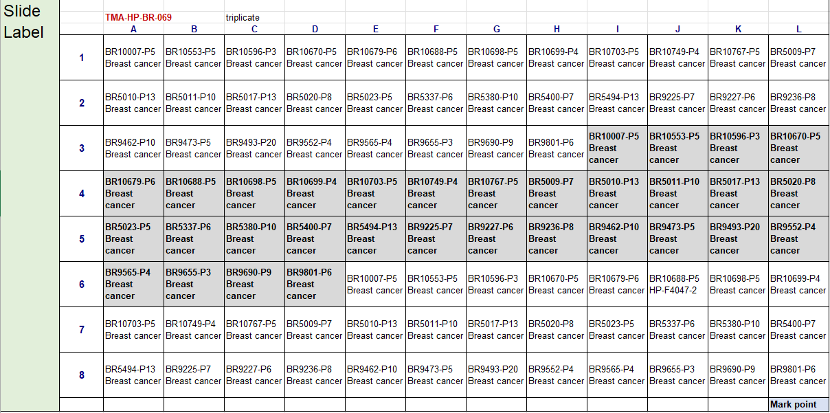 | QC | Each TMA slide has >90% core occupancy. H&E and Ki67 IHC staining have been performed on a representative slide of each lot of TMA product. |