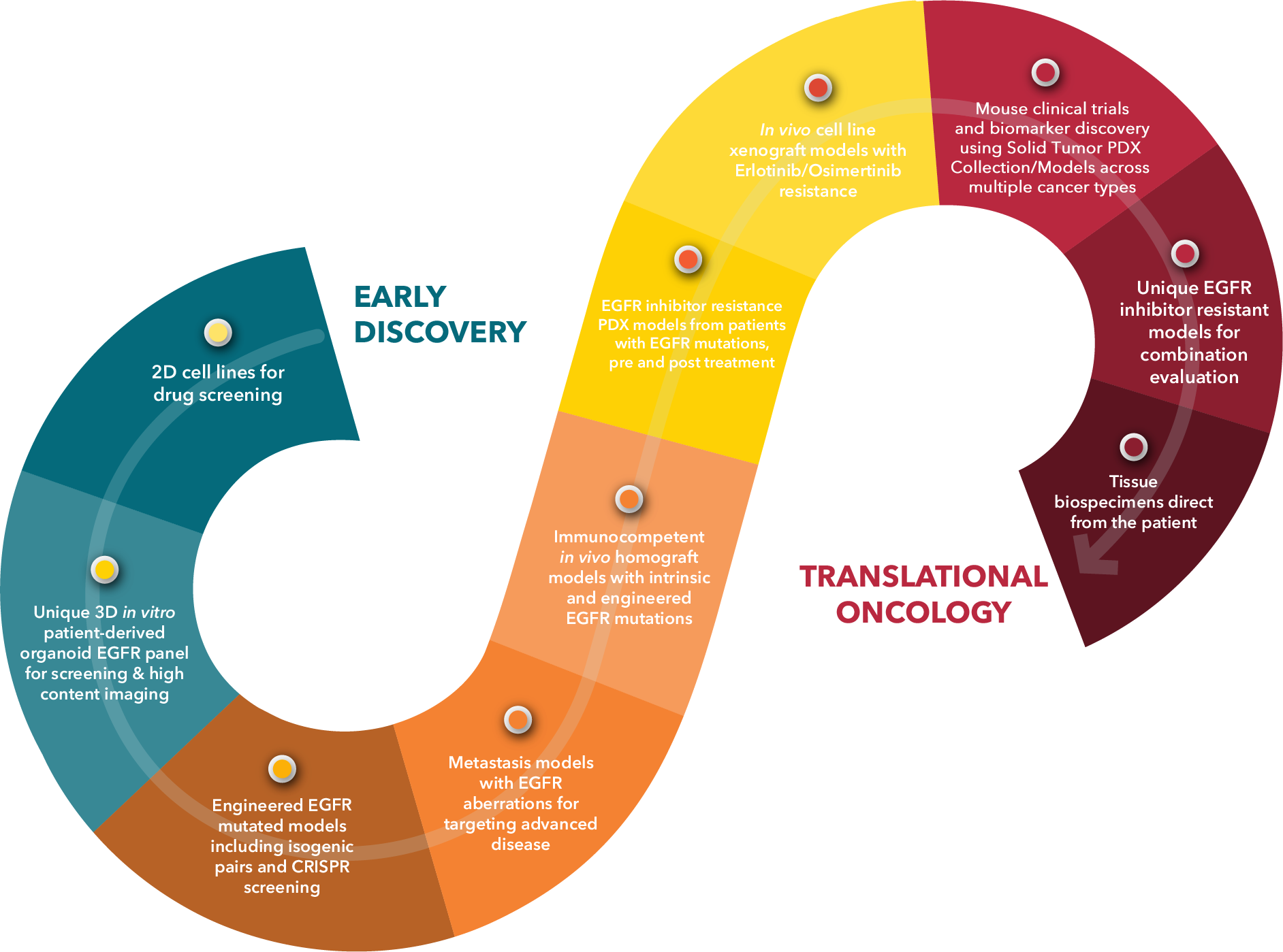 With our innovative models for oncology, combined with our integrated services across in vitro, in vivo, ex vivo, and in silico platforms, allows for a comprehensive services support for extracellular receptor targeting, intracellular signaling, and drug resistance targeting. Utilizing patient-derived and cell line models, we reflect EGFR expression, mutations, and resistance, providing a robust framework for your cancer research.